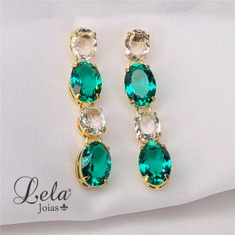 2. BRINCO DE ZIRCÔNIA TRANSPARENTE E VERDE FOLHEADO A OURO