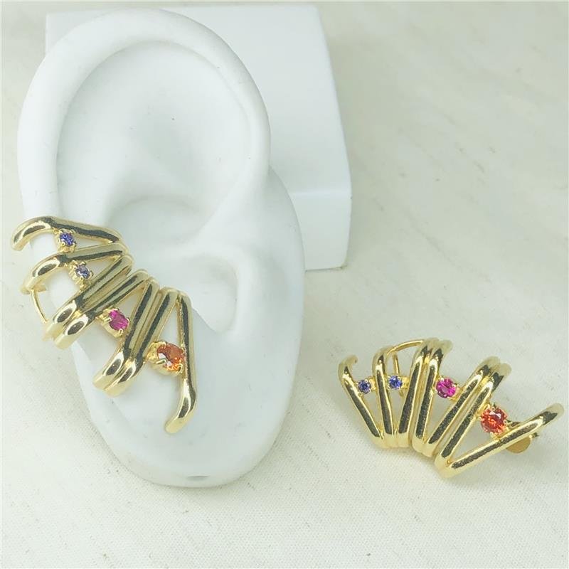 BRINCO EAR CUFF COM ZIRCÔNIA COLORIDA FOLHEADO A OURO