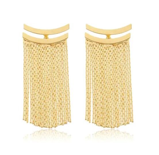 BRINCO EAR JACKET FRANJA FOLHEADA A OURO