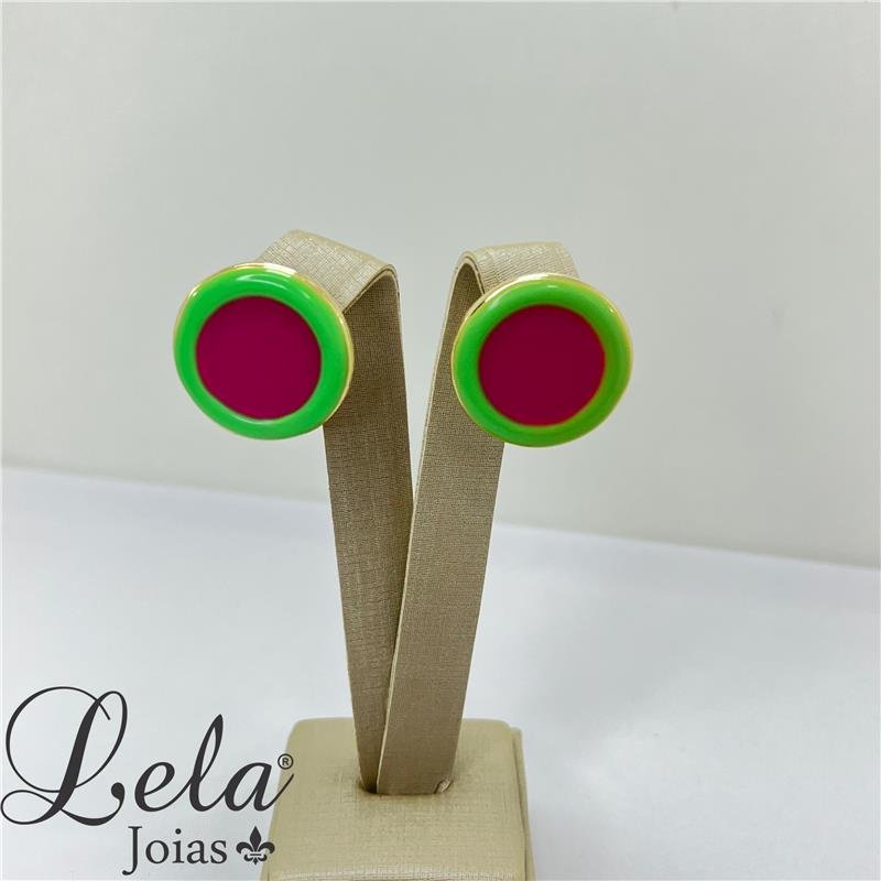 BRINCO EM BIJUTERIA REDONDO VERDE E ROSA