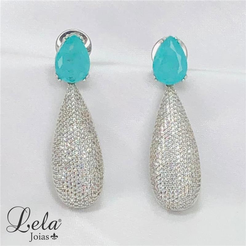 BRINCO GOTA FUSION CRAVEJADA COM ZIRCÔNIAS FOLHEADO A RÓDIO BRANCO