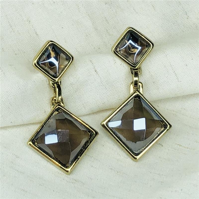 2. BRINCO QUARTZO FUME FACETADO FOLHEADO A OURO