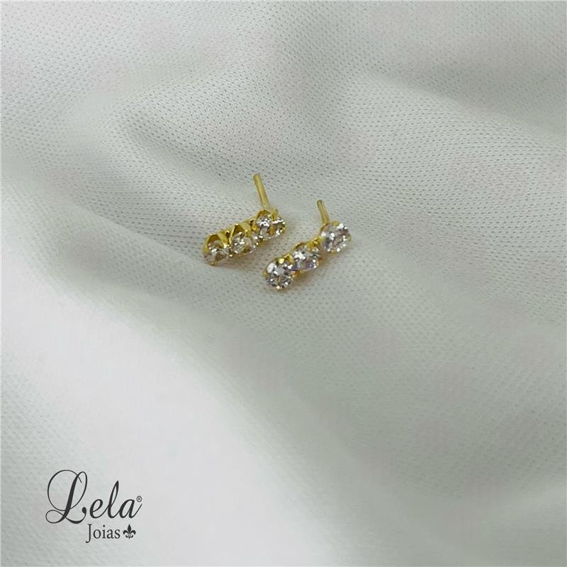 2. BRINCO TRÊS ZIRCÔNIAS EM OURO 18K
