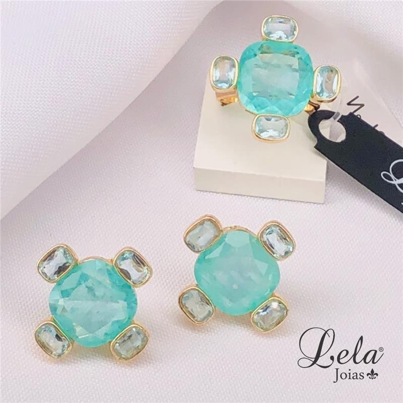 CONJUNTO ANEL DE BRINCO TURMALINA FUSION FOLHEADO A OURO