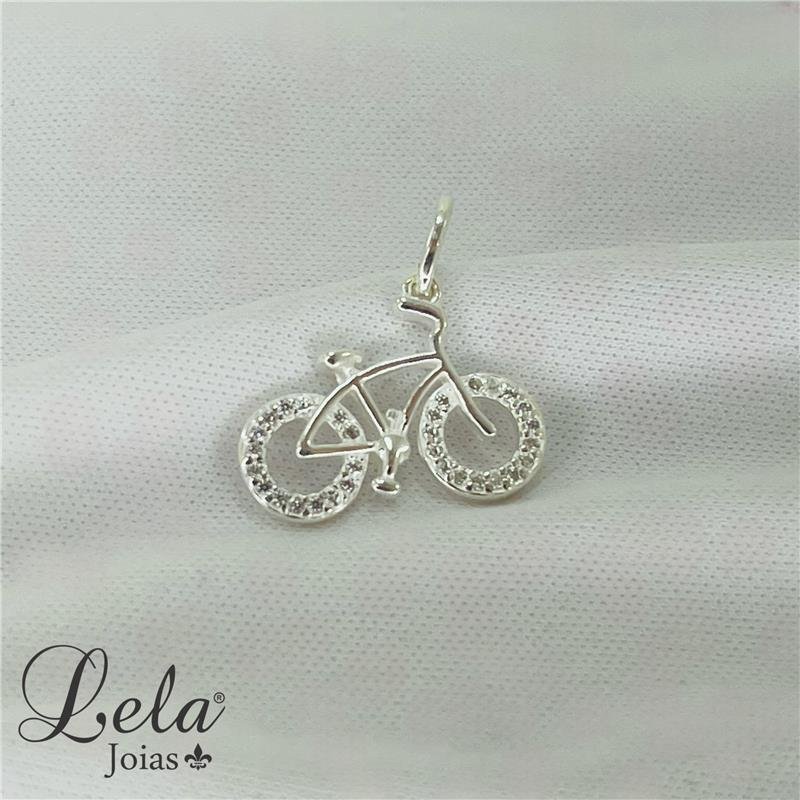 PINGENTE BICICLETA CRAVEJADA EM PRATA 925