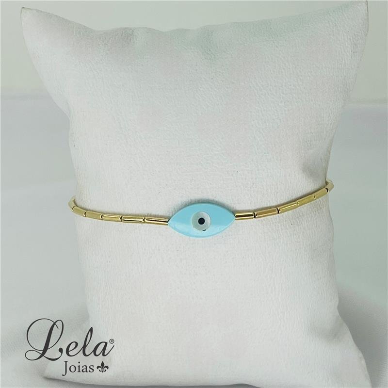 2. PULSEIRA EM CANUTILHO COM PINGENTE DE OLHO GREGO COM AZUL TIFFANY FOLHEADO A OURO